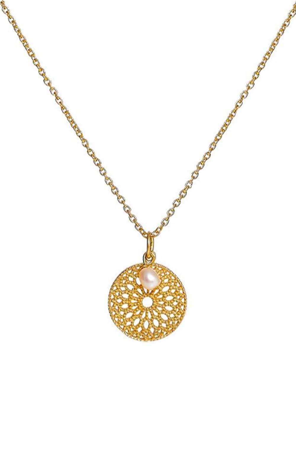 Ladies Pearls of the Orient Gold Vermeil Pearl and Disc Pendant
