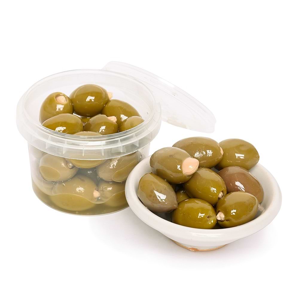 Pitted Green Olives (62%), Sunflower Oil (21%), Almonds (15%), Extra Virgin Olive Oil (2%), Salt, Ascorbic Acid