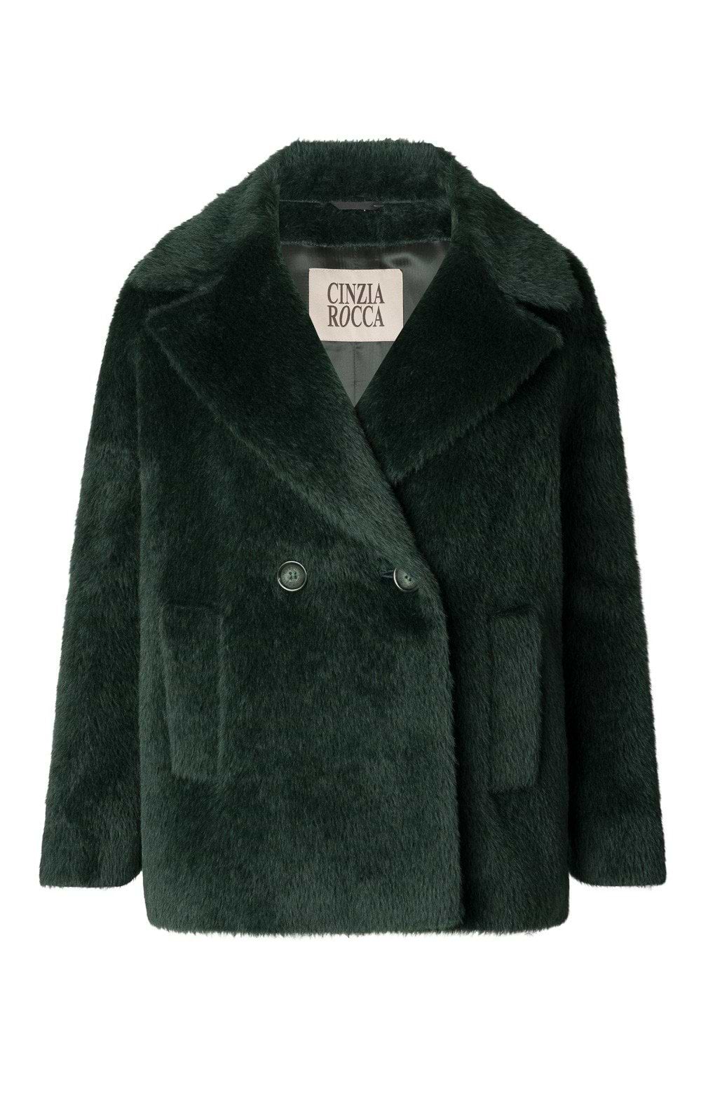 Cropped furry jacket in Alpaca-wool blend.Brushed effect.Double-breasted two button fastening.Notched lapels.Drop shoulder.Two front welt pockets.Fully lined.Cropped length.About Cinzia Rocca