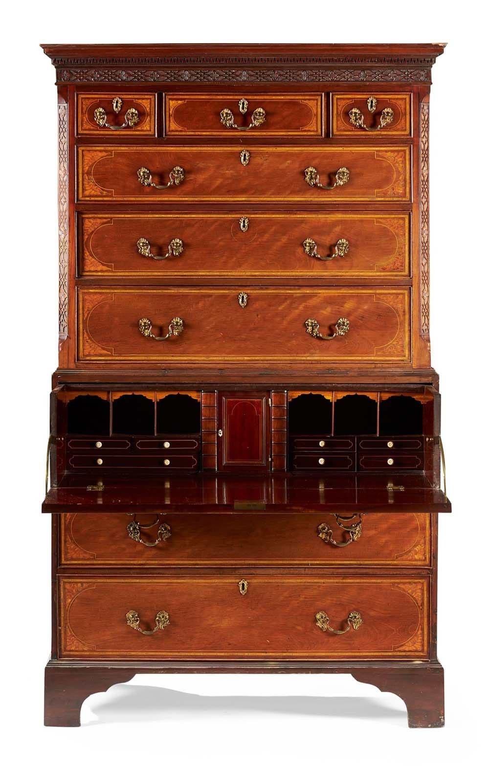 George III Mahogany and Inlay Secretaire Chest-on-Chest, 18th Century