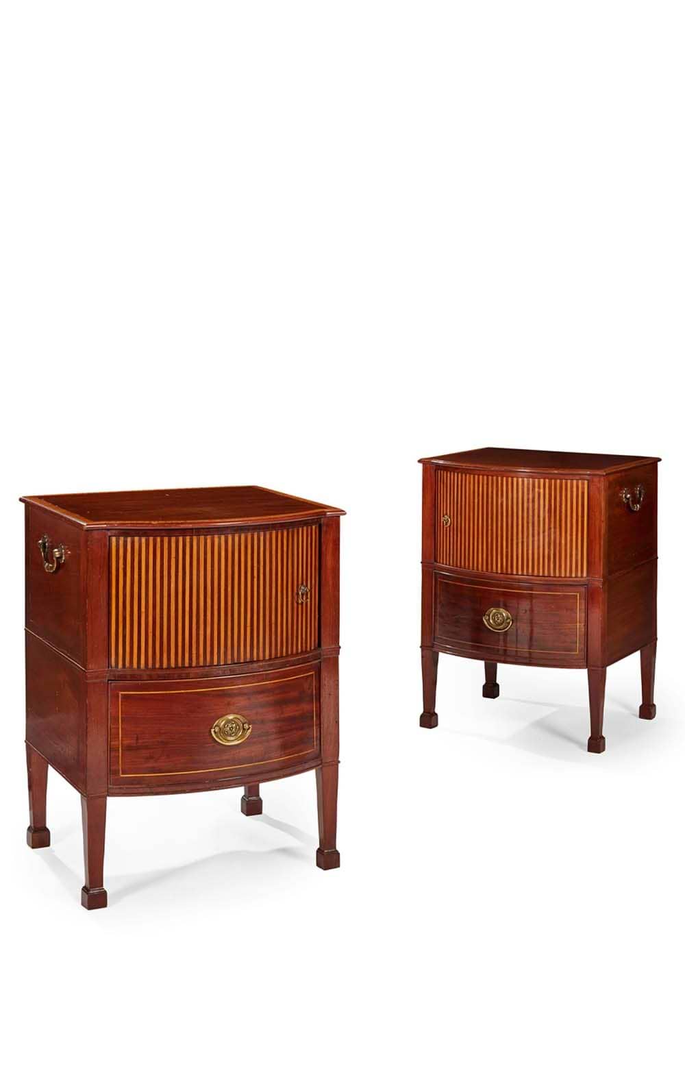 Pair of Georgian Style Mahogany and Satinwood Bedside Commodes, Late 19th Century