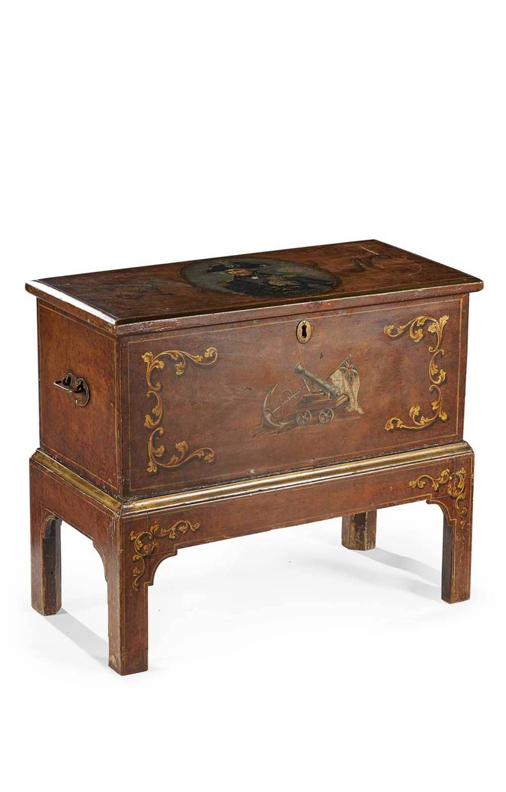 Sailor's Painted Commemorative Chest-on-Stand, 19th Century
