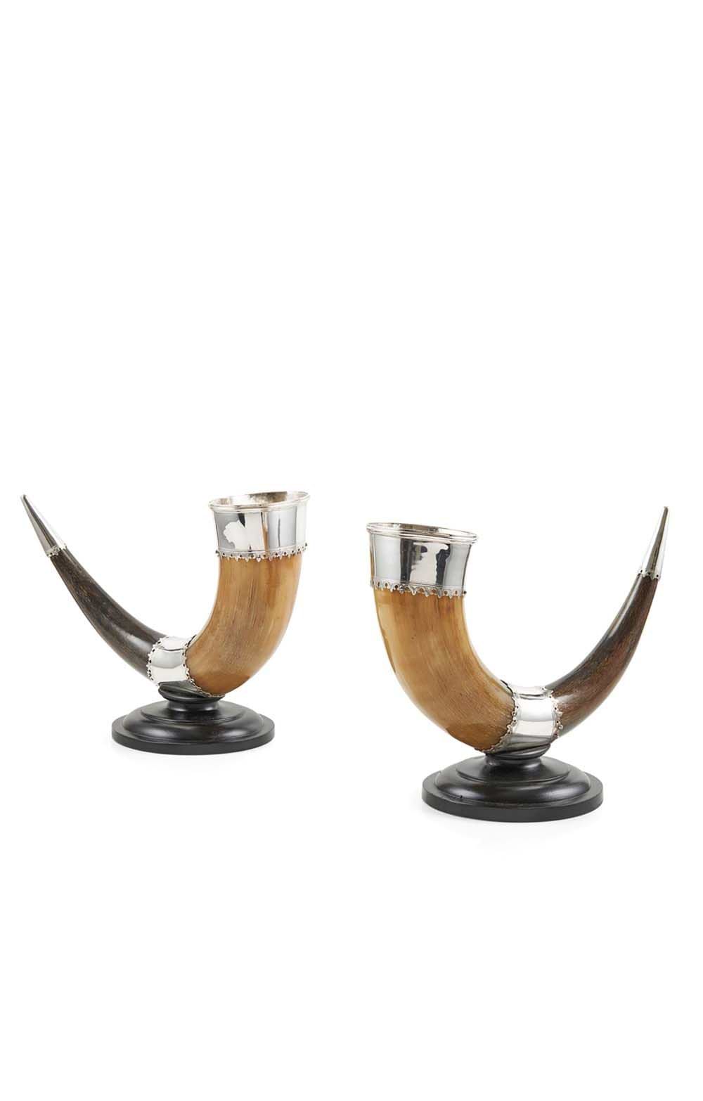 Pair of Silver-Plated Mounted Horn Cups, Early 20th Century