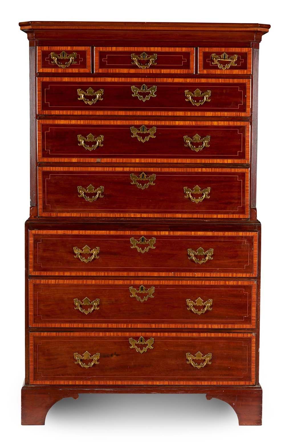 Late George III Mahogany and Satinwood Crossbanded Ches-on-Chest, Late 18th Century