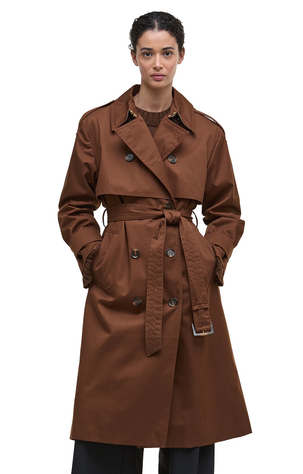 The ladies Barbour Aoife trench showerproof coat combines classic double-breasted styling with modern showerproof protection for every occasion.