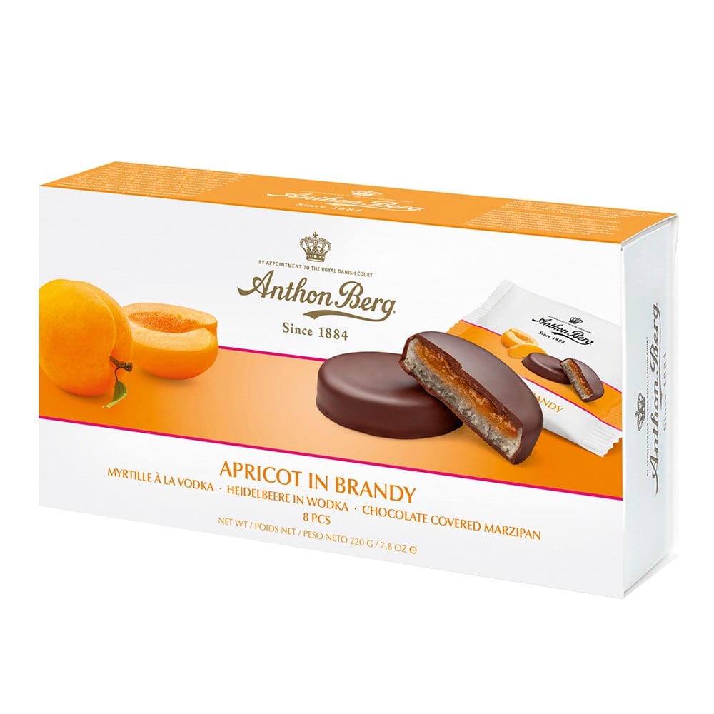 Sugar, cocoa mass, almonds 11%, apricot kernels, apricots 10%, glucose syrup, cocoa butter, alcohol, milk fat, Brandy 0.7%, emulsifier (rapeseed lecithin), thickener (pectin), flavourings, preservatives (sorbic acid, potassium sorbate), acid (citric acid).