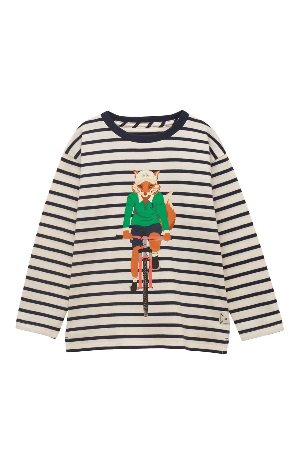 Cycling fox graphic printBreton stripesTonal brand embroidery on reverseSewn brand label near hemAll over stripesBold block colour collarDrop shoulder fit.Team with jeans or joggers, this top is for casual days in and park days alike.