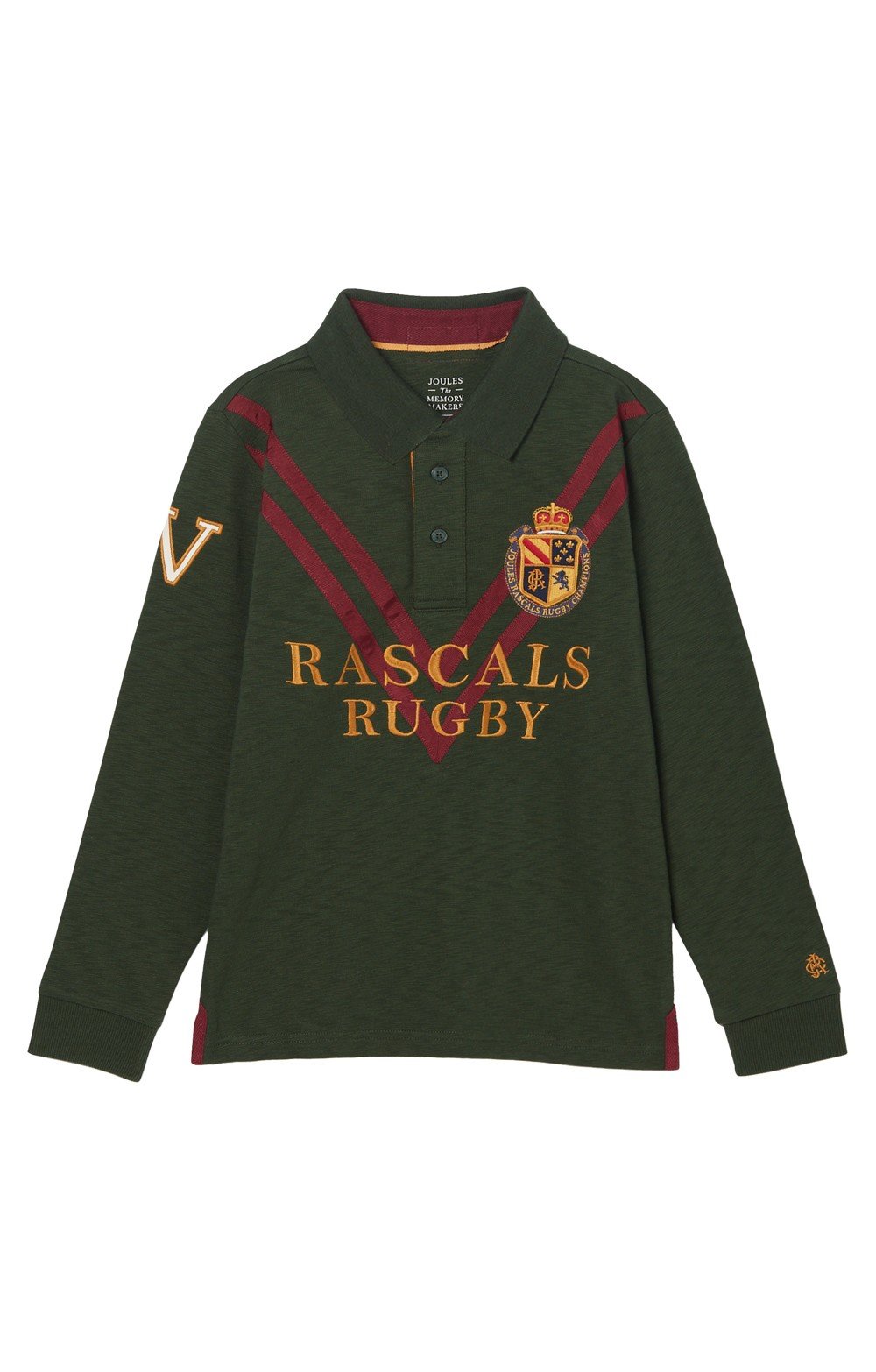 Your boy will adore joining the rugby crew with this classic long-sleeved rugby shirt in hard-wearing cotton. Featuring a traditional woven collar, this richly detailed rugby shirt also features the playful insignia of an imagined rugby team in which your boy is the star player. Side vents, a button neck and ribbing to the sleeves complete a design that will quickly become a firm favourite.