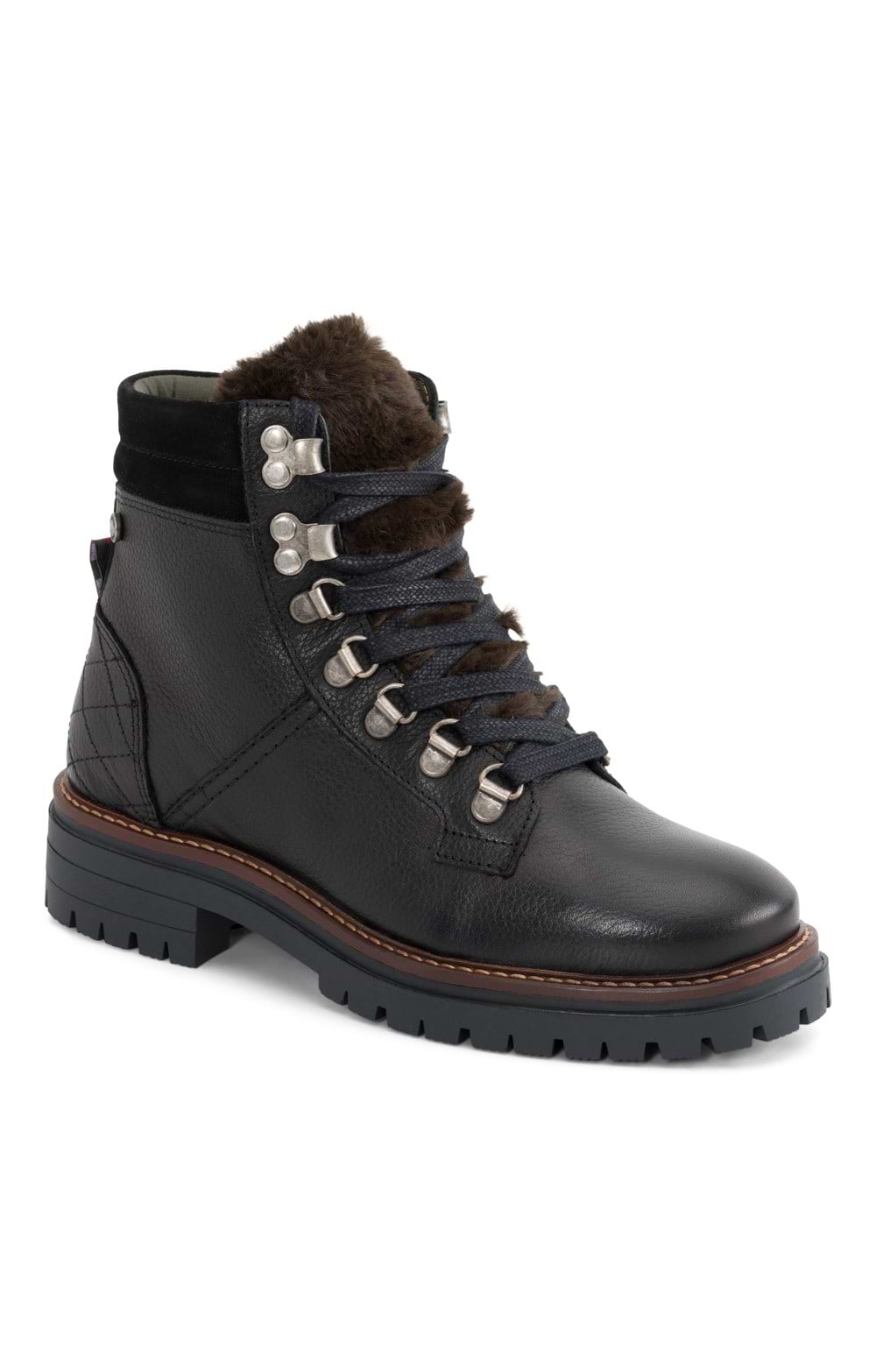 The ladies Barbour Bamburgh hiker boot offers a luxurious blend of fashion and function, making it an ideal choice for various outdoor activities. Crafted from premium leather with a distinctive Barbour diamond quilted pattern, these boots are not only stylish but exceptionally durable. The faux fur detail adds a touch of sophistication, whilst the D-ring eyelets ensure easy lacing for a secure fit. The cleated sole provides excellent grip, essential for exploring the countryside or navigating city streets. The mixed cotton and polyester lining offers breathability and comfort for all-day wear.