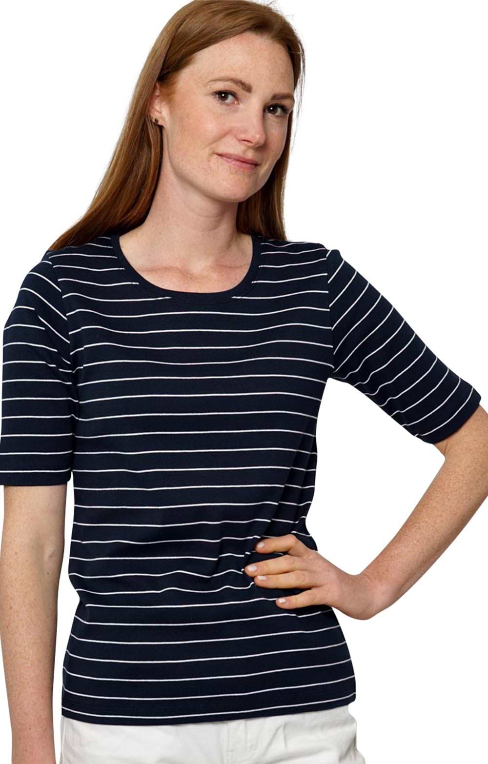 Ladies Basic Stripe Short Sleeved Crew