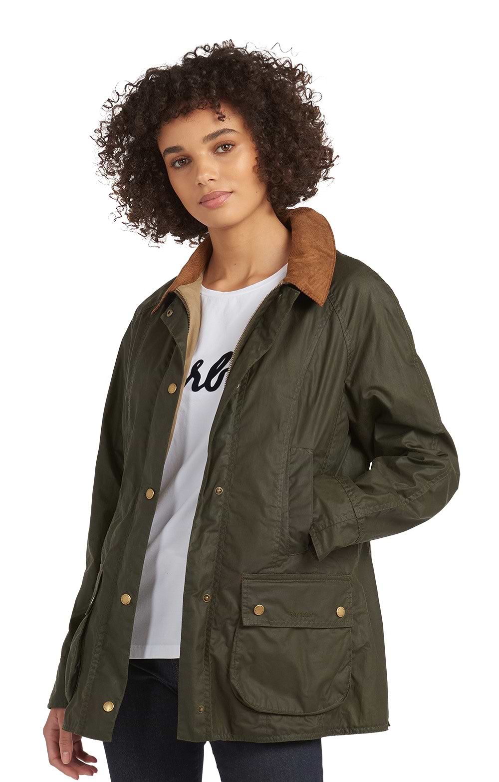 This ladies Barbour Beadnell lightweight wax jacket is a durable wardrobe staple with signature Barbour tailoring and countryside styling.