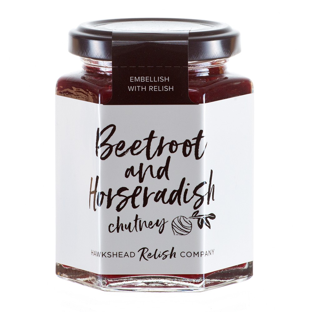 Beetroot (23%), Sugar, Apples, Acetic Acid, Onions, Raisins, Horseradish (2%), Salt, Ginger Puree, Gelling Agent-pectin, Cardamom, Black Pepper, Cloves.