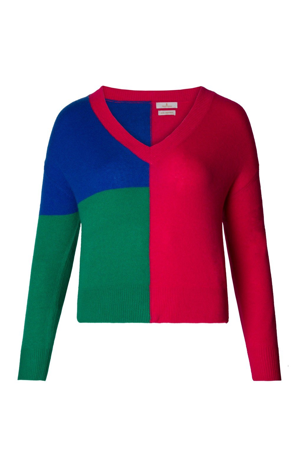 100% pure cashmereFlattering V-neck designModern block pattern for a fresh edgeRelaxed yet tailored fitNaturally warm and breathableThis is cashmere done right - quietly sophisticated, effortlessly wearable and built to last season after season.
