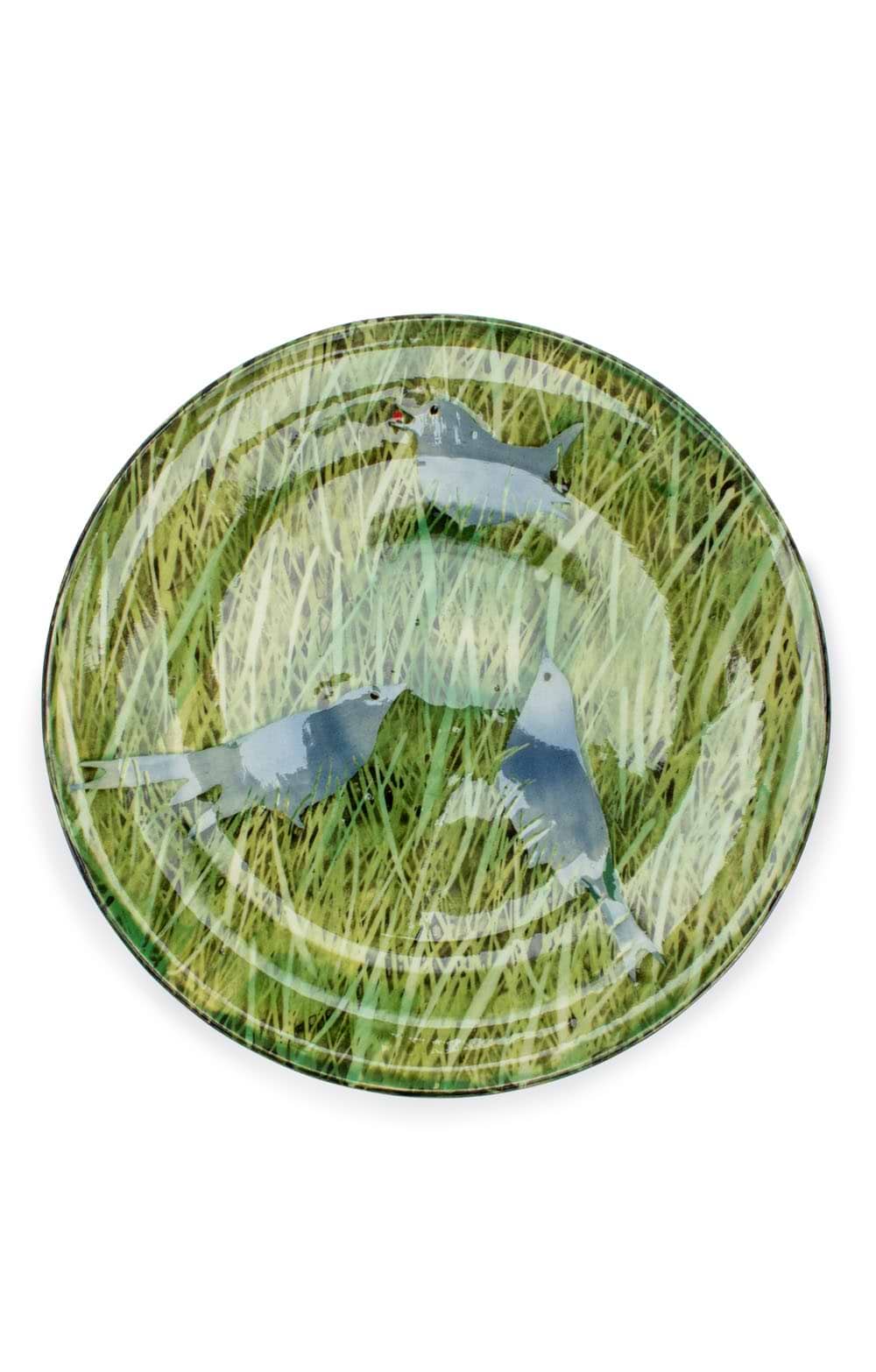Blue Birds in Grass Plate by Sophie MacCarthy