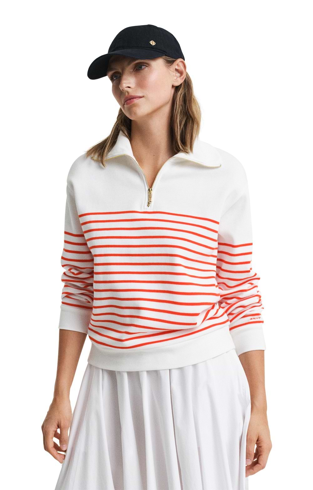 Relaxed fitHalf-zip frontRib knit textureBreton stripesRibbed neck, hem and sleeve cuffsGant logo embroidered at sleevePair with denim jeans and loafers for a classic look or style with leggings and sneakers for a sporty ensemble.