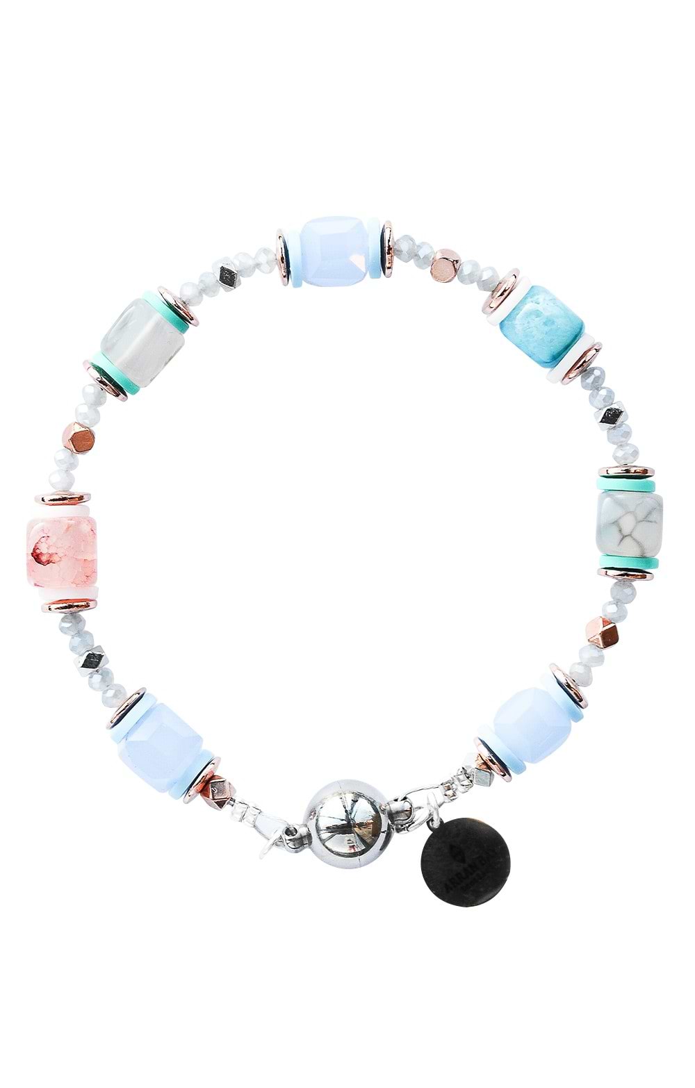 In subtle colours courtesy of pretty glass beads and natural pastel agate, the ladies Arran Bay glass and pastel agate bracelet is hand-crafted in Scotland.