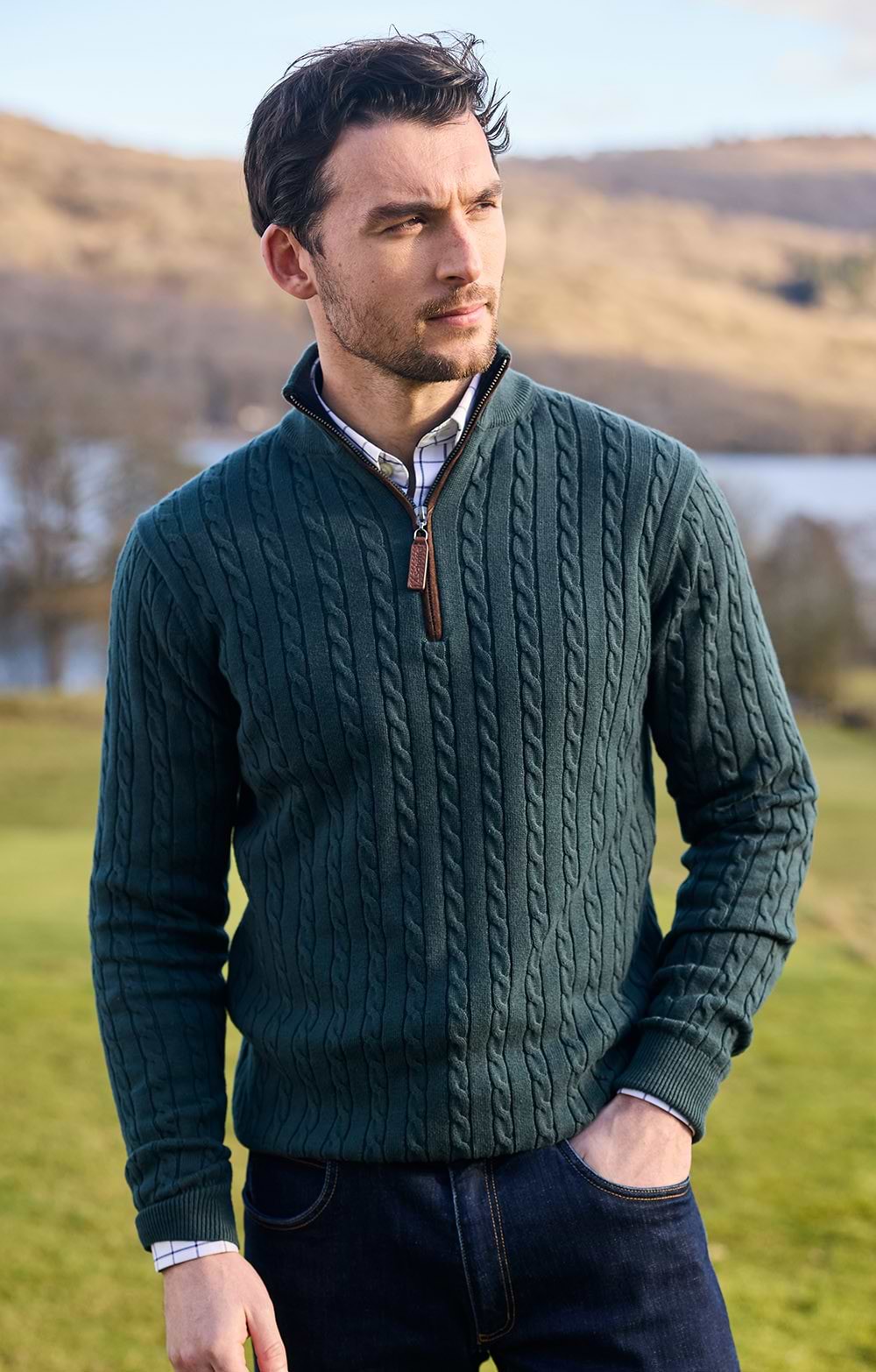Men's Schoffel Calton Cotton Cashmere Cable Quarter Zip Jumper