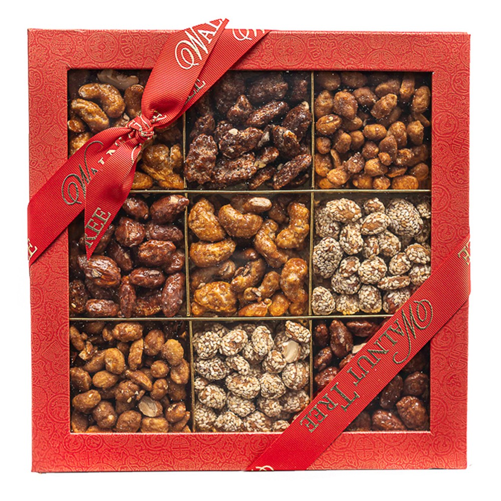 Caramelised Almonds: ALMONDS, sugar. Caramelised Cashew Honey: CASHEW, sugar, honey flavour. Caramelised Peanut: PEANUT, sugar. Caramelised Peanut Sesame: PEANUTS, sugar, SESAME, coat mix. Caramelised Pecan: PECANS, sugar