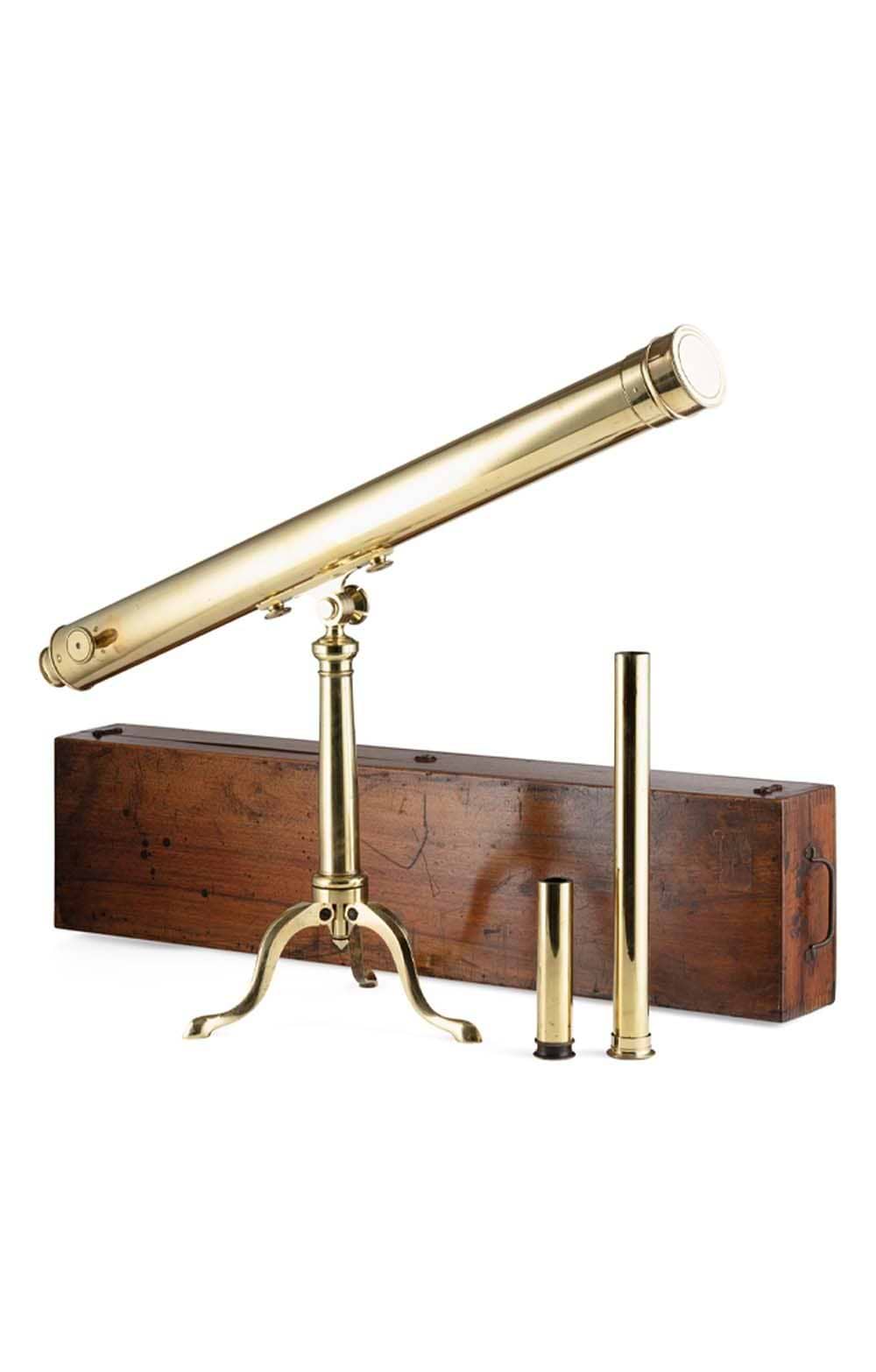 Cased Brass 3-Inch Refracting Telescope with Tripod Stand, Late 19th Century