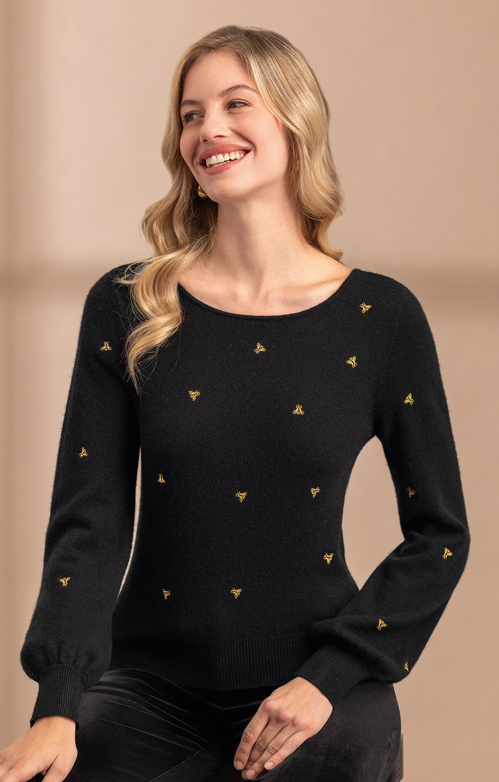 Ladies House of Bruar Cashmere Bee Embroidered Jumper