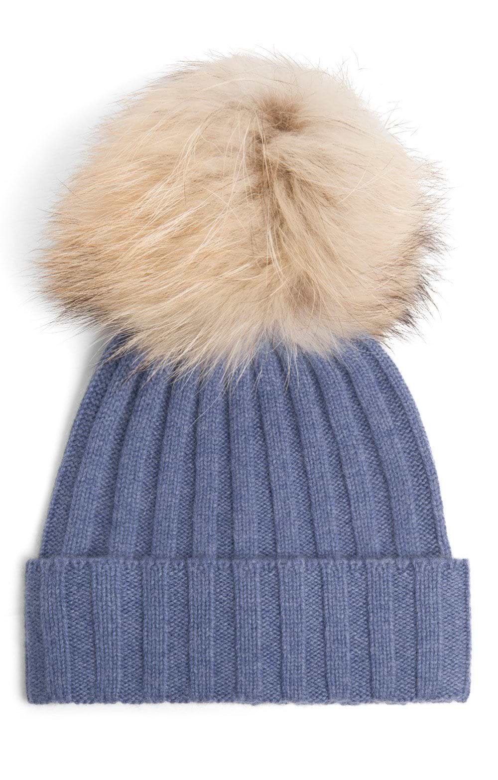 Ladies Cashmere Hat with Fox Fur Pom Pom