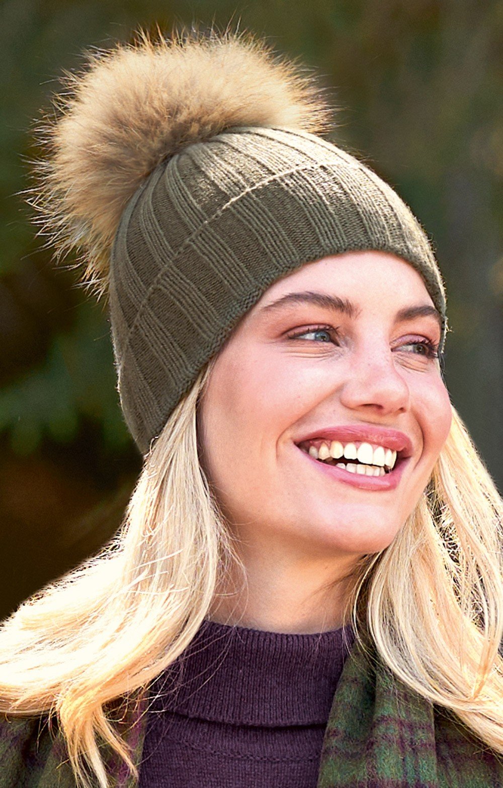 Ladies Cashmere Hat with Fox Fur Pom Pom