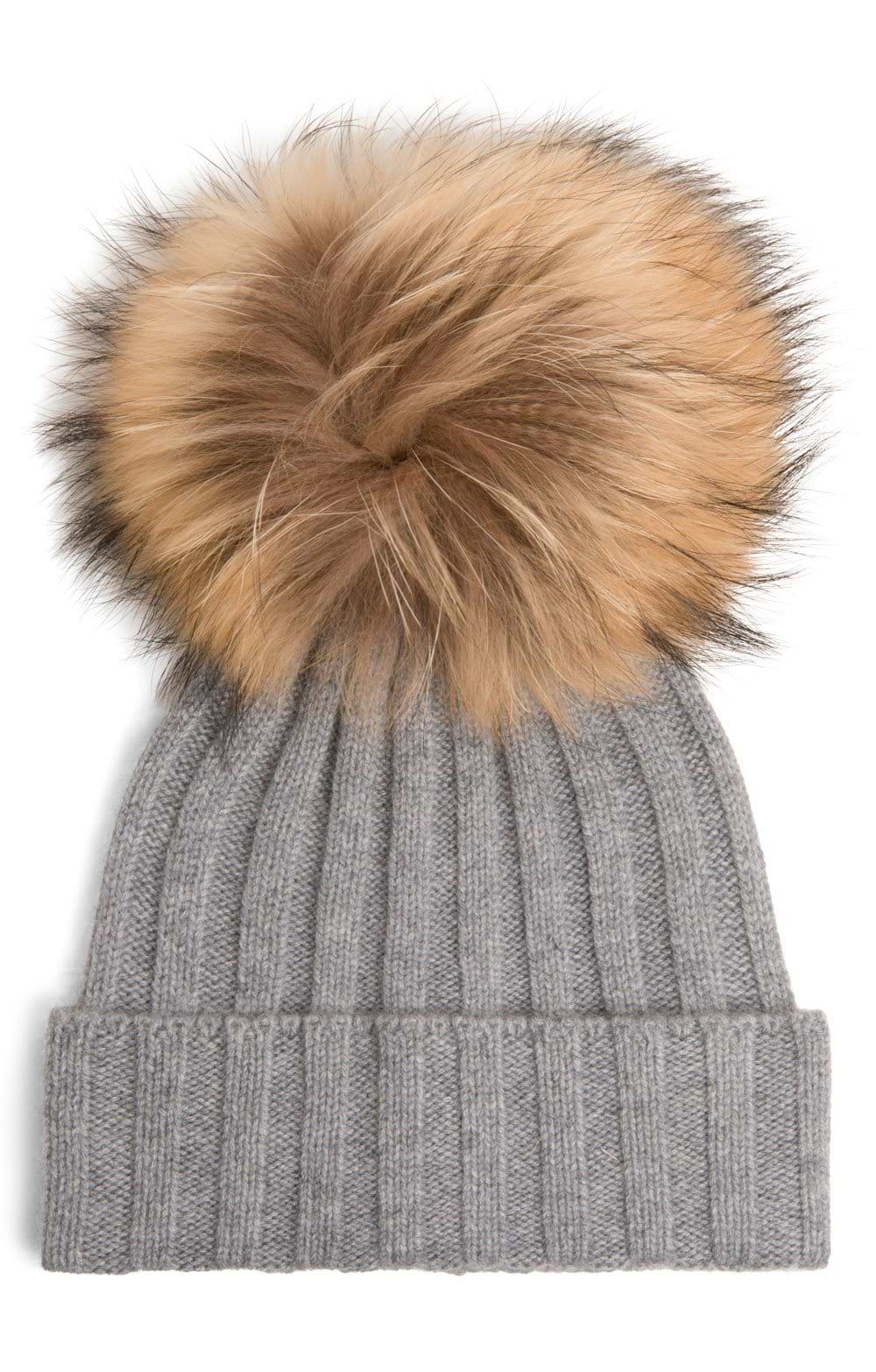 Ladies Cashmere Hat with Fox Fur Pom Pom