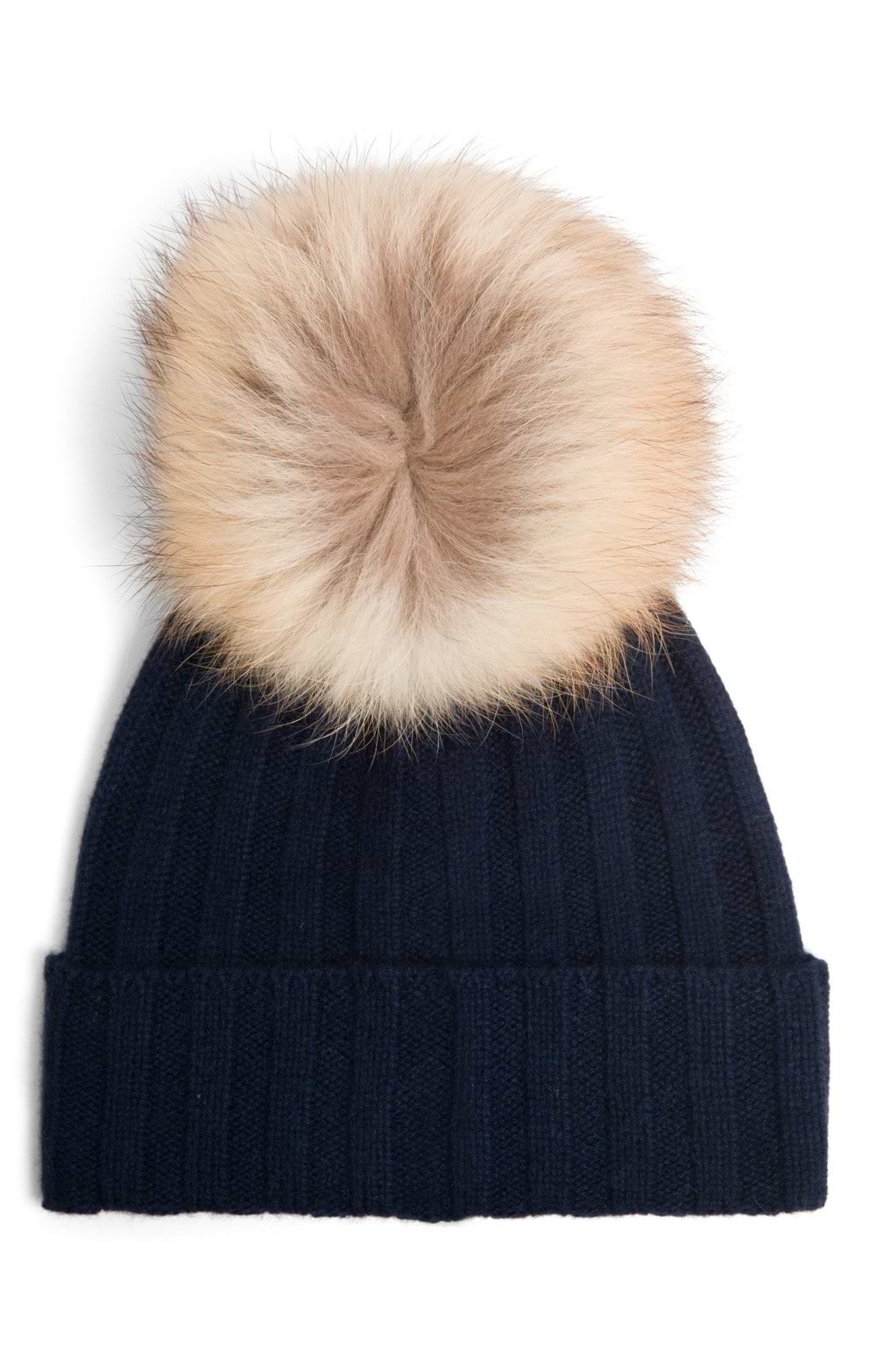 Ladies Cashmere Hat with Fox Fur Pom Pom