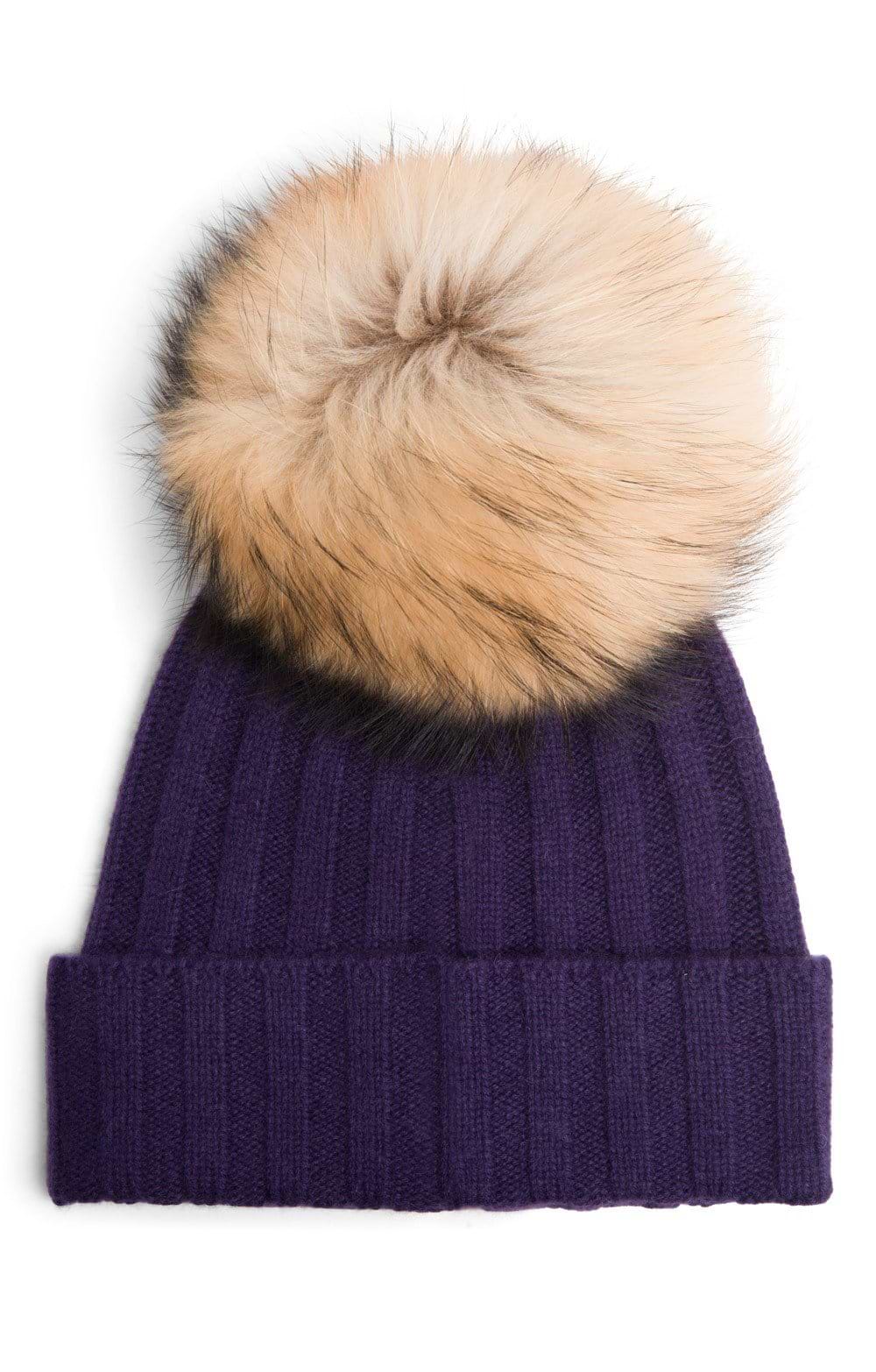 Ladies Cashmere Hat with Fox Fur Pom Pom