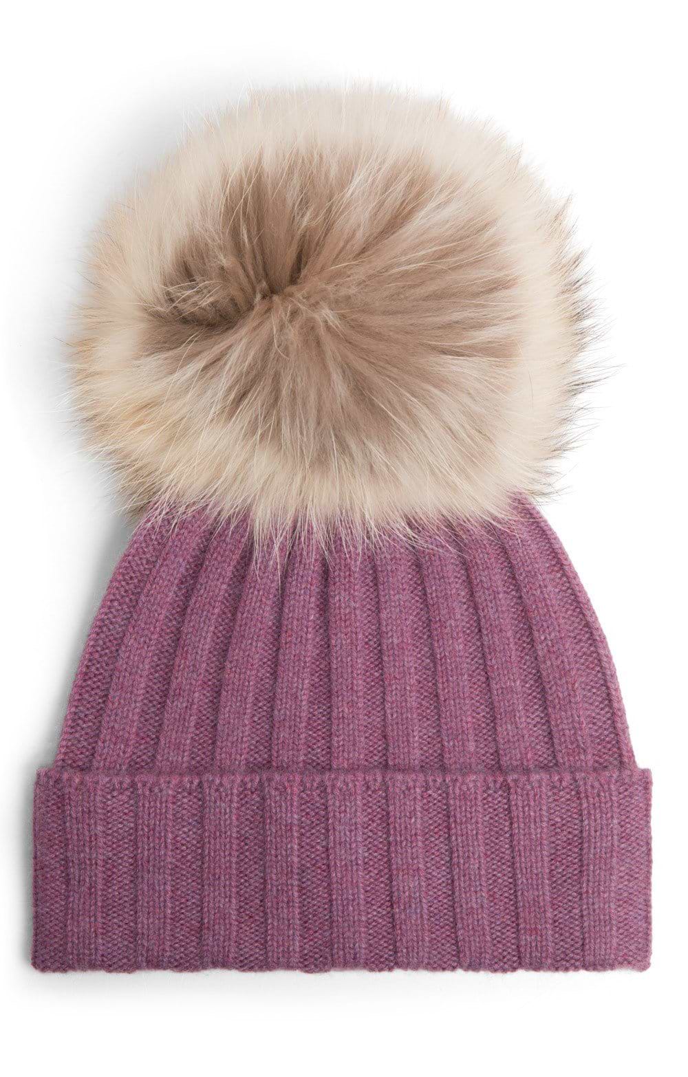Ladies Cashmere Hat with Fox Fur Pom Pom