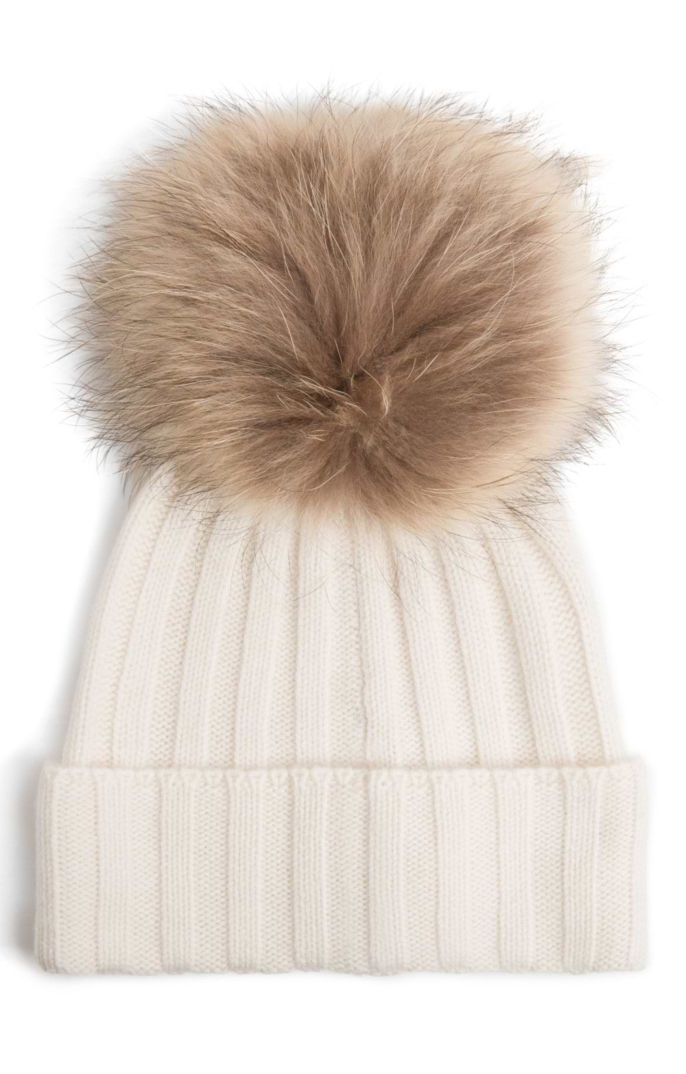Ladies Cashmere Hat with Fox Fur Pom Pom