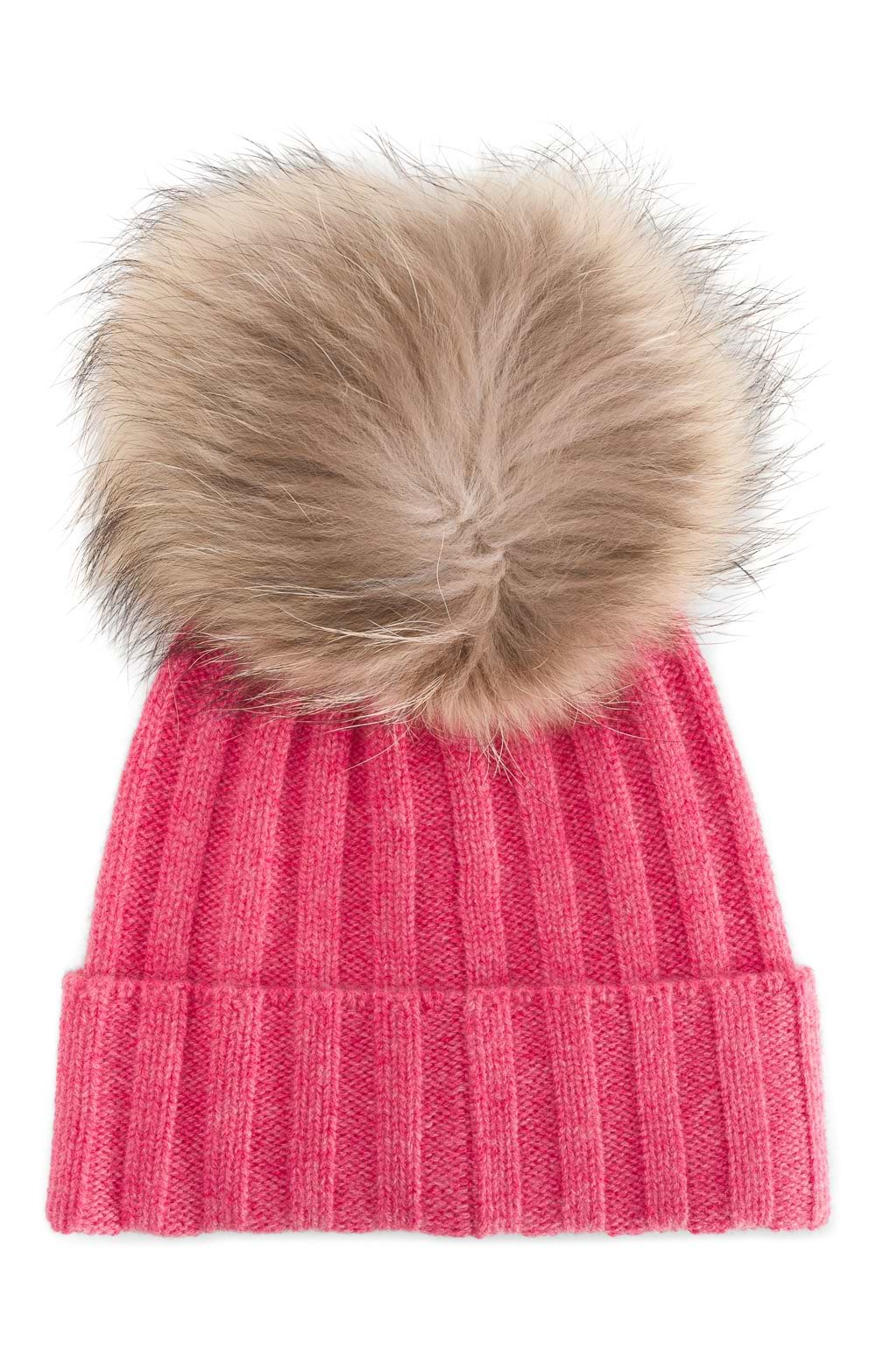 Ladies Cashmere Hat with Fox Fur Pom Pom