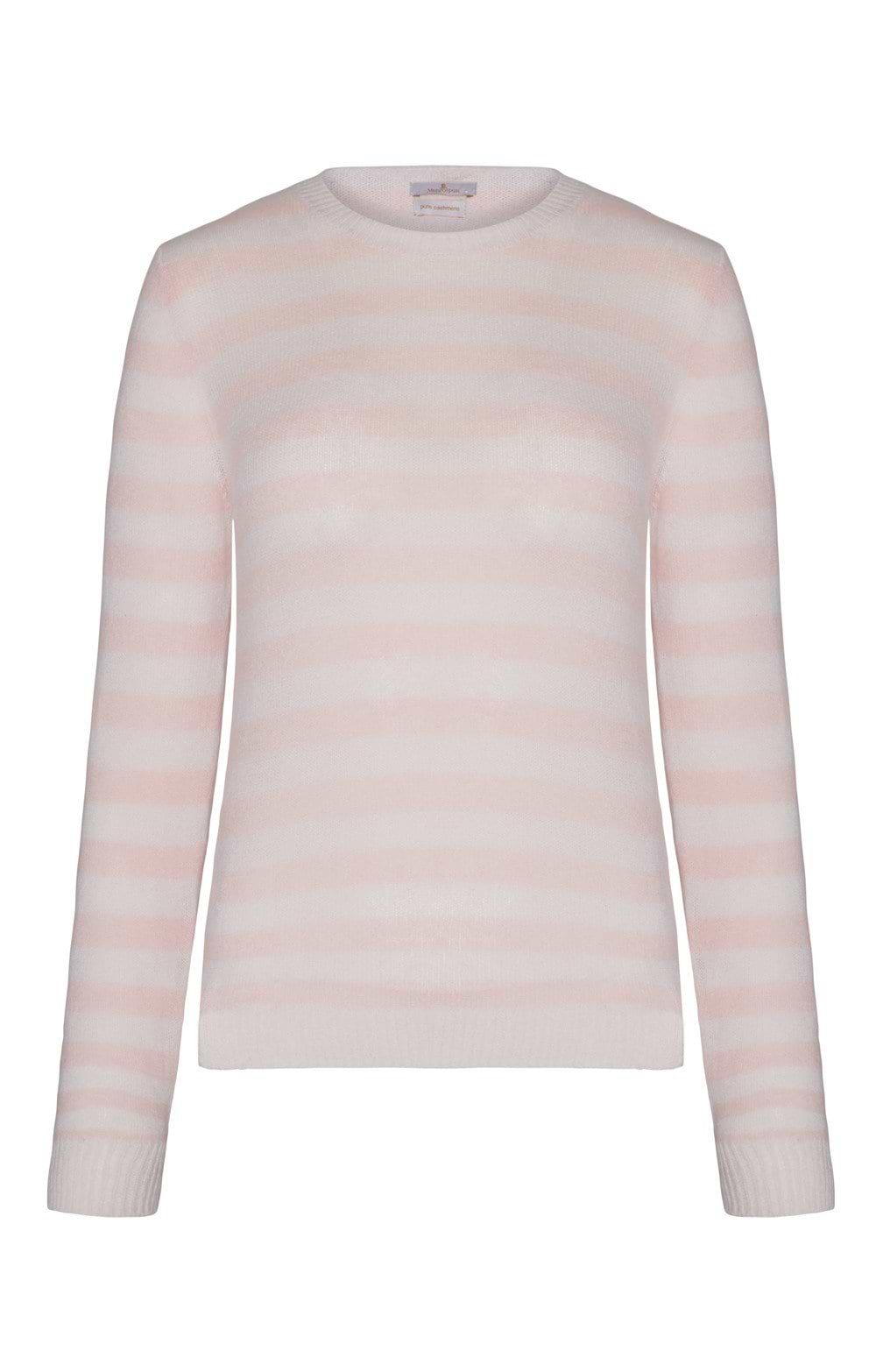 The cashmere gauzy stripe crew jumper is a testament to understated luxury and fine craftsmanship. Crafted from a lighter weight cashmere, this jumper provides a delicate touch that's perfect for milder days, all while maintaining its natural warmth. The slightly shorter length and true-to-size fit make it a versatile addition to your wardrobe, effortlessly pairing with various ensembles. With a classic crew neckline and a subtle stripe pattern, it embodies timeless elegance without being overpowering.