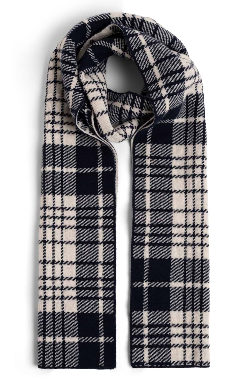 Designed and knitted in the scenic Scottish Borders, this full-sized scarf is crafted from the softest premium cashmere, famed for its down-soft handle and superb insulation. Reminiscent of the diagonal warps and wefts of distinguished Scottish tartans, the two-colour oversized plaid check looks fabulous whether you choose a perfect pastel or a bold bright. Enjoy giving this superb scarf, even if it's a well-earned treat for yourself.