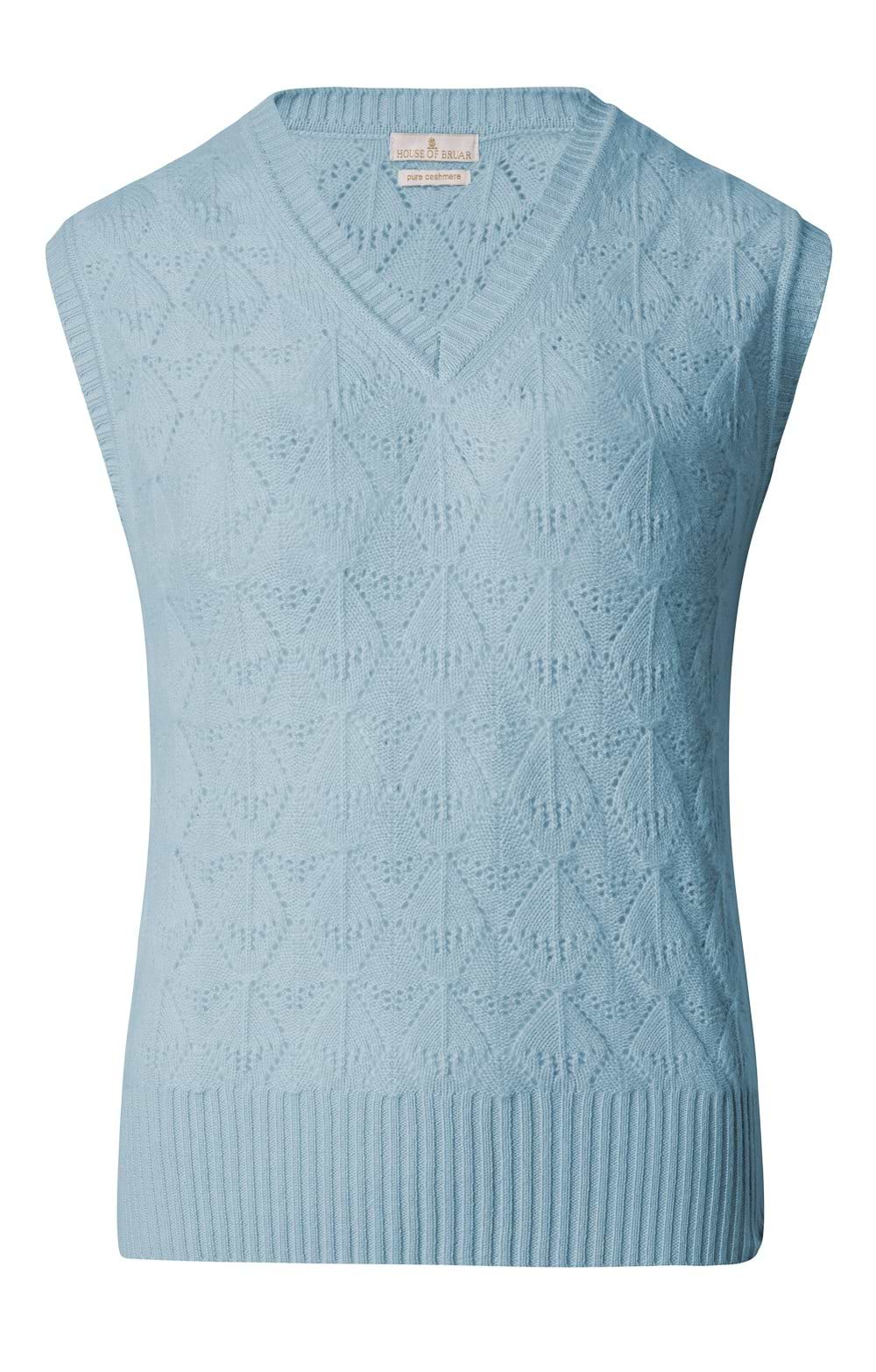 V-neck slipover in pure cashmereFancy pointelle knit in vintage diamond patternDouble ribbing to the neck, shoulders and hemDesigned by The House of BruarYou'll adore wearing this over a simple summer tee, with your comfiest jeans or chinos, but it will also work with a crisp white shirt for a smarter look, or layered with other soft cashmere knitwear as the season changes.