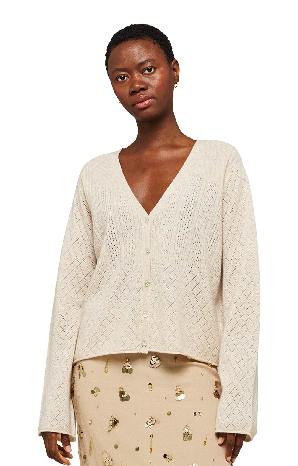 100% cashmereOpen-knit summer stitch designOpen frontRelaxed fitMachine washableLayer this cardigan over a sleeveless dress for a chic evening look or pair with a camisole and shorts for a casual daytime outfit.