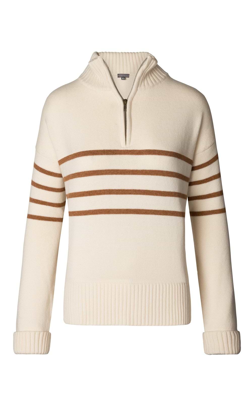 Half-zip sweater in a soft lambswool and cashmere blendRibbing to cuffs, collar and hemVented hemHorizontal contrast stripe design to middleEnjoy wearing with a cotton tee and your favourite wide leg jeans, or dress up with a coordinated tweed skirt.
