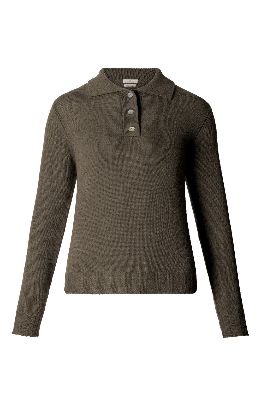 With its chunky ribbed sleeves, pretty shell buttons and wonderfully lofty cashmere, this thrilling shirt neck is something truly special.