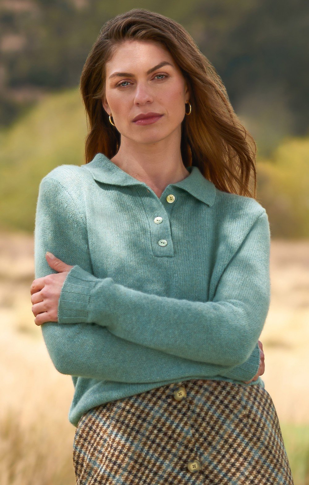 With its chunky ribbed sleeves, pretty shell buttons and wonderfully lofty cashmere, this thrilling shirt neck is something truly special.