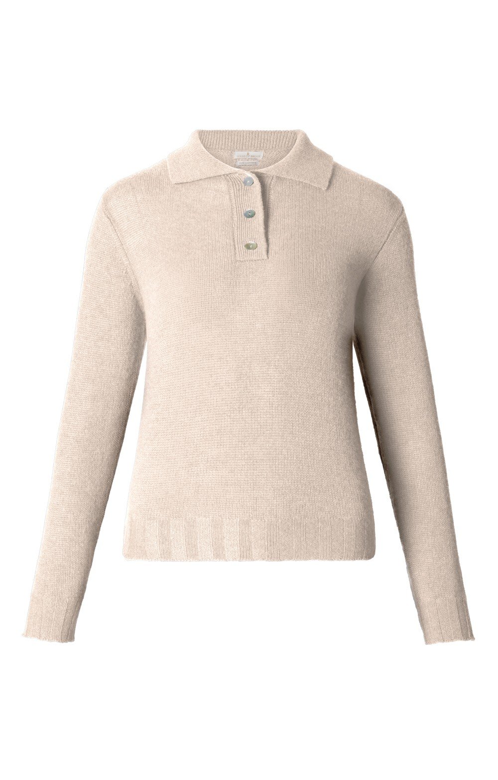 With its chunky ribbed sleeves, pretty shell buttons and wonderfully lofty cashmere, this thrilling shirt neck is something truly special.