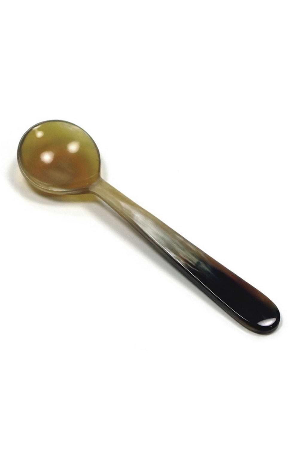 An elegant ox horn caviar spoon with round bowl, perfect for delicate servings and adding a touch of class to your dining experience.