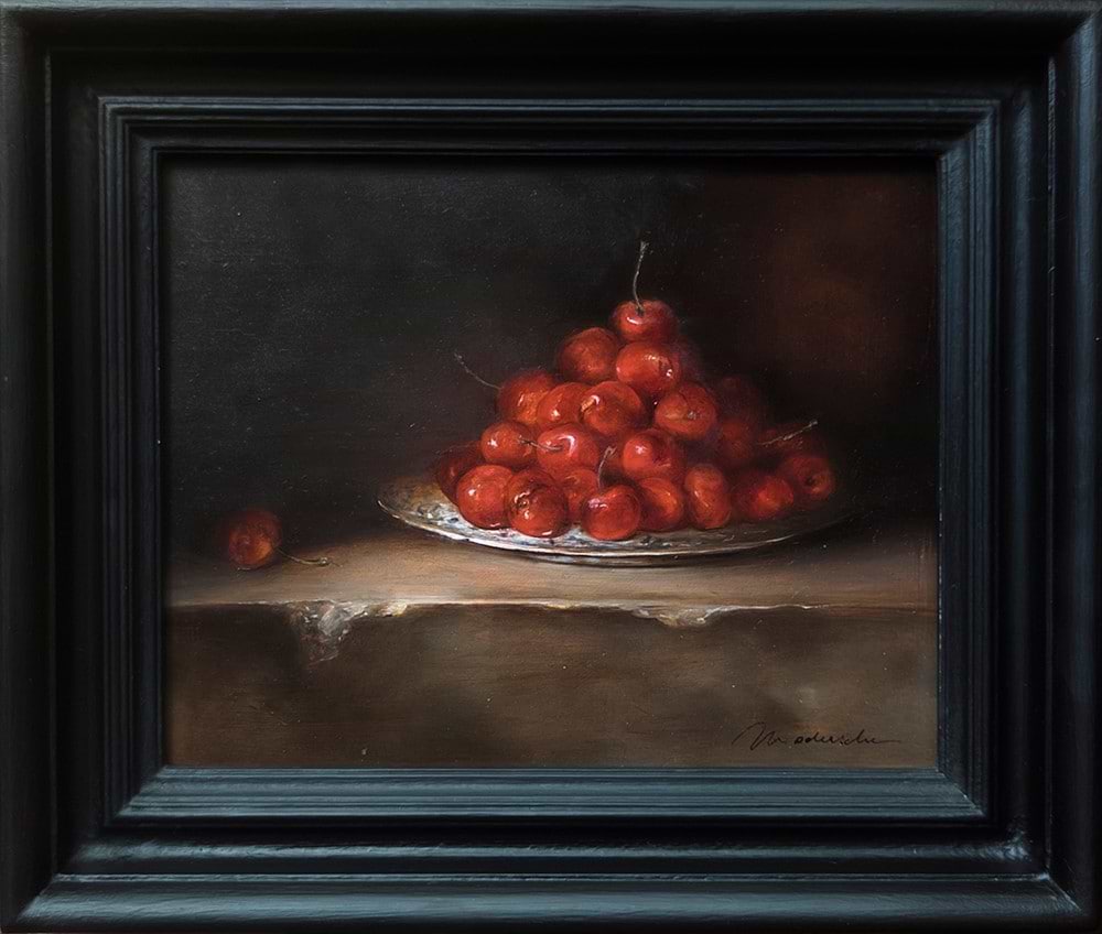 Cherries on Delf Blue Plate by Tanja Moderscheim