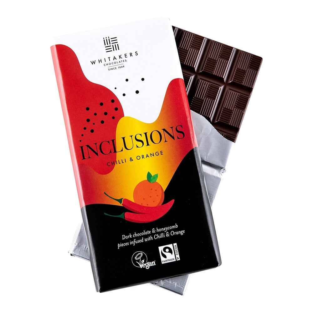 Dark Chocolate (cocoa Mass, Sugar, Cocoa Butter, Emulsifier: Soya Lecithin), Sugar, Glucose Syrup, Orange Oil, Chilli Flavour, Raising Agent: Sodium Bicarbonate.