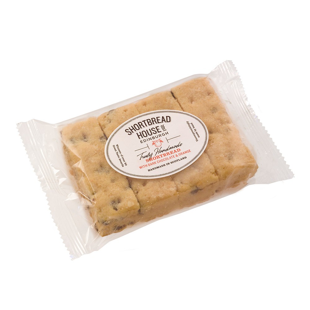 Ingredients: Flour (Wheat Flour (Gluten), Calcium, Iron, Niacin, Thiamin), Butter (Milk, Salt), Sugar, Chocolate (8.5%)[Cocoa Mass, Sugar, Cocoa Butter, Fat Reduced Cocoa Powder, Emulsifier: Soya Lecithin], Ground Rice, Vegetable Oils (Rapeseed & Segregated Sustainable Palm Oils), Orange Oil (0.6%). Also May Contain Nuts & Egg.