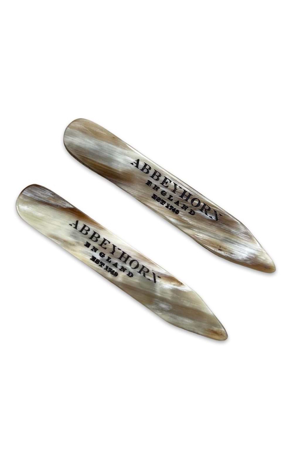 Crafted in England, this pair of Abbeyhorn collar stiffeners combines polished horn craftsmanship with practical design to keep your collars crisp and neat.