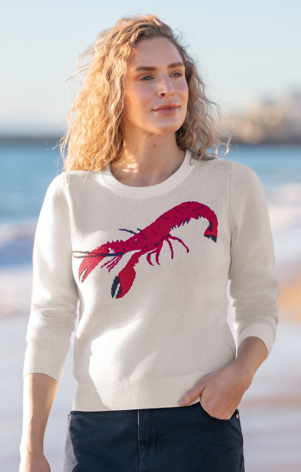 Ladies Cotton Lobster Crew Neck Jumper