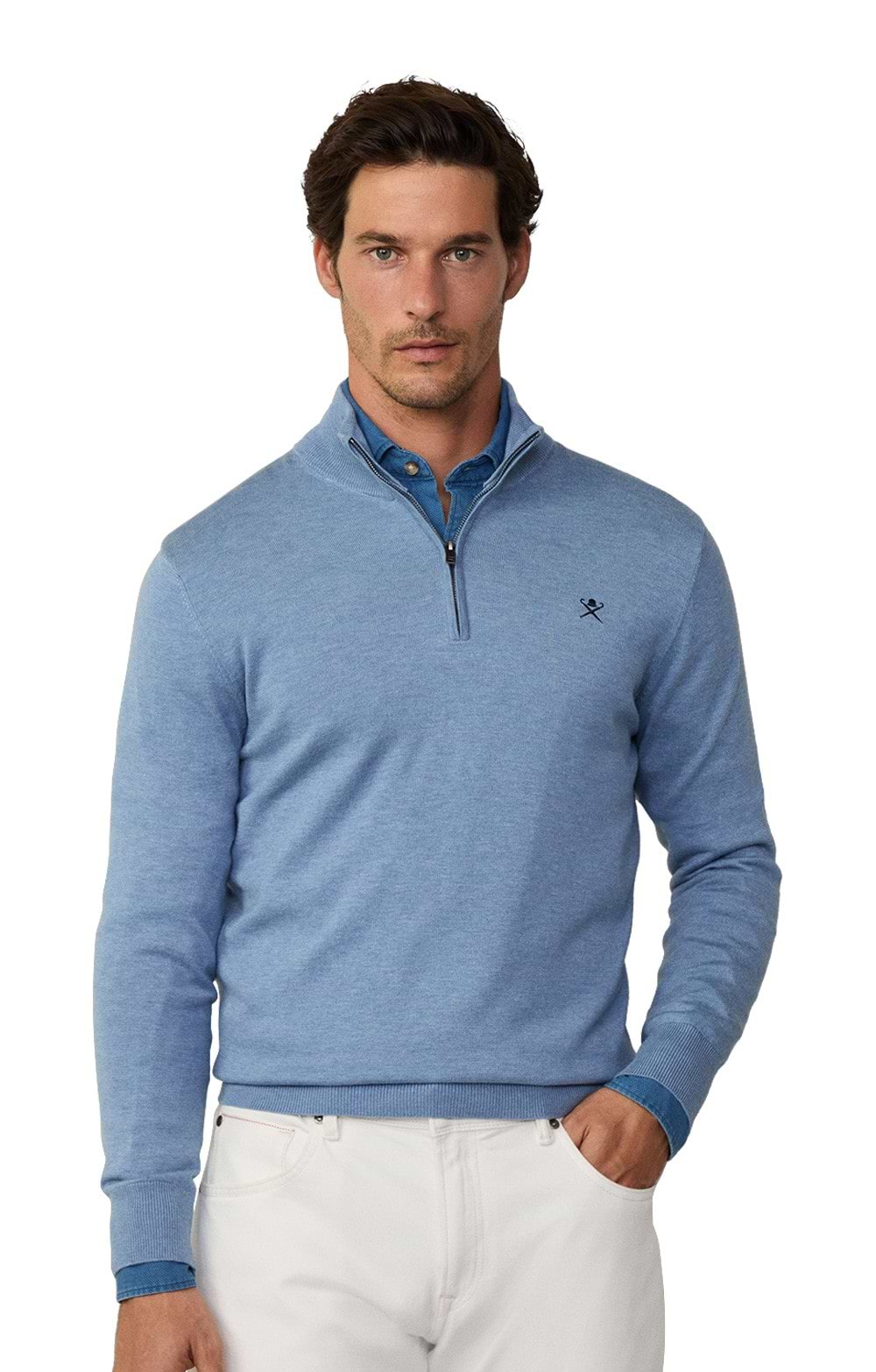 Finely-knitted Hackett T-zip jumperLuxurious blend of cotton and silkRegular fitRibbed stand collarBowler hat and umbrella tonal embroidery on the left chestHackett zip pullRibbed cuffs and hemEnjoy wearing this superb piece to add sophistication to your work look with a crisp shirt and smart flannel trousers, or add it to upgrade simple jeans and a crew neck for a relaxed weekend.