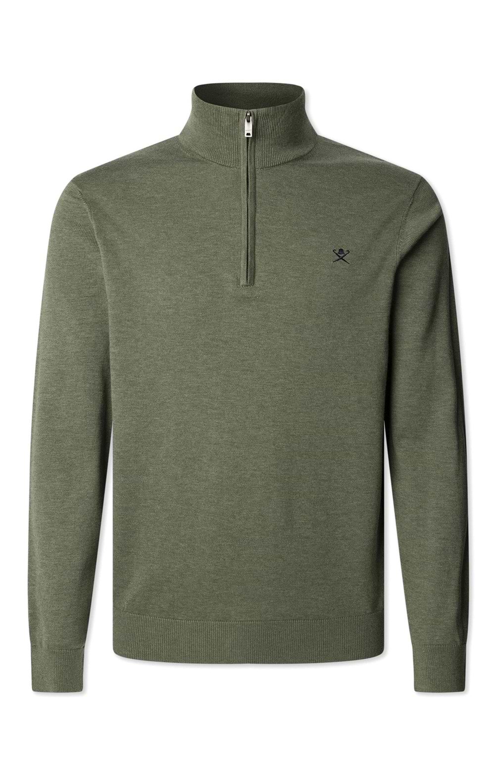 Finely-knitted Hackett T-zip jumperLuxurious blend of cotton and silkRegular fitRibbed stand collarBowler hat and umbrella tonal embroidery on the left chestHackett zip pullRibbed cuffs and hemEnjoy wearing this superb piece to add sophistication to your work look with a crisp shirt and smart flannel trousers, or add it to upgrade simple jeans and a crew neck for a relaxed weekend.