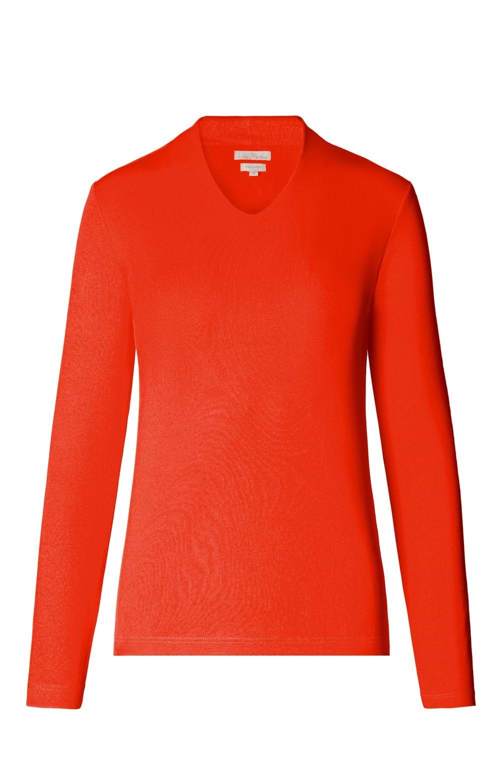 Available in a broad spectrum of colours, from muted country classics to strident primary tones, our V-neck top is a highly adaptable quality basic that you will come to depend upon. With a fitted style, long set-in sleeves and a medium-deep V-neck that is perfectly judged for showing off your favourite chains or pendants, this top even has double layering across the front as an additional quality feature.