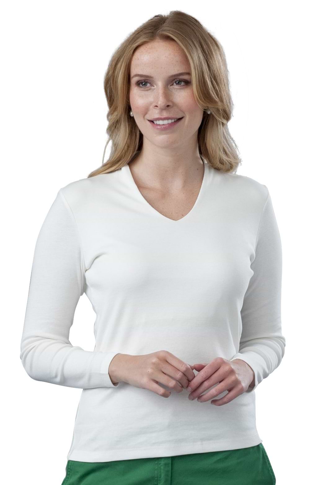 Our breathable but hard-wearing ladies cotton V-neck top is a high quality essential that will form a key building block for great casual outfits.